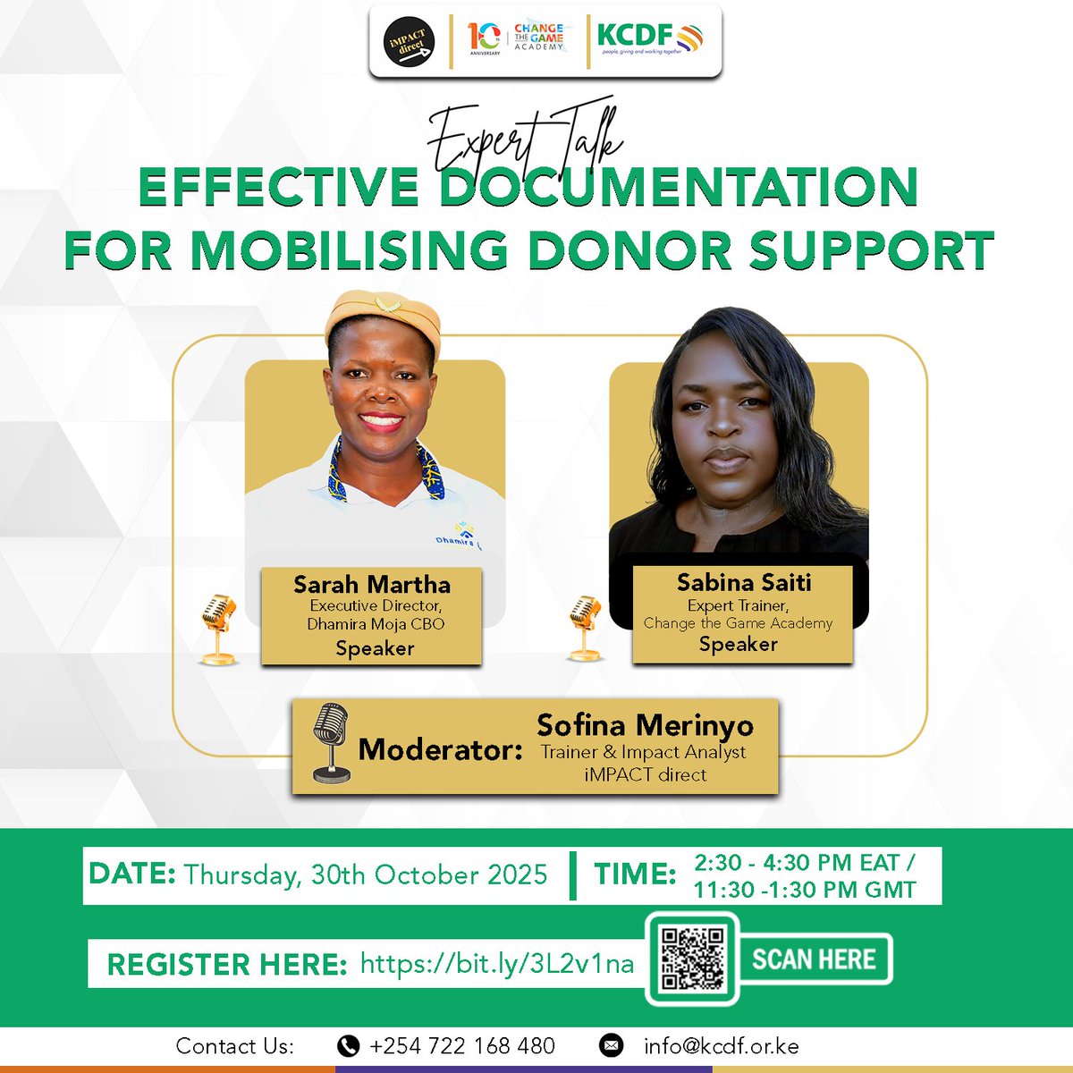 Our Executive Director Ms. Sarah Martha alongside Sabina Saiti, an Expert Trainer at Change the Game Academy will be featuring as Speakers in an insightful Expert Talk webinar on "Effective Documentation for Mobilising Donor Support".